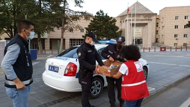 Türk Kızılay Kayseri Şube gönüllüleri, sokağa çıkma kısıtlaması nedeni ile şehrin farklı bölgelerinde uygulamada görev yapan polislere iftar vaktinde 450 porsiyon yemek ikram ederek, salgınla mücadelede önemli bir misyon üstlenen emniyet teşkilatımızın yılmaz neferlerine destek verdiler.