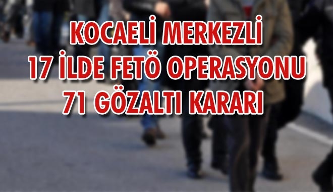 Kocaeli merkezli 17 ilde FETÖ/PDY silahlı terör örgütünün askeri yapılanmasına yönelik gerçekleştirilen eş zamanlı operasyonlarda 43´ü aktif görevde olmak üzere 71 askeri personel hakkında gözaltı kararı çıkarıldı.