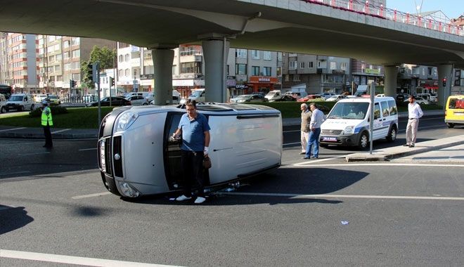 Kayseri´de sürücüsünün direksiyon hakimiyetini kaybettiği minibüs yan yatarken, kazada yaralanan olmadı.