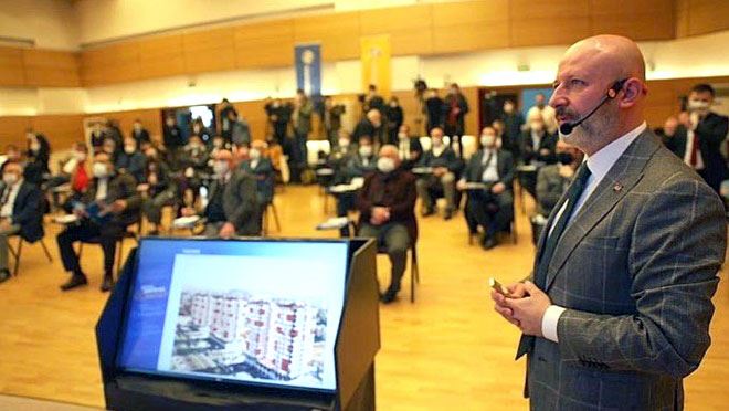 Basın mensupları ve meclis üyelerini Kadir Has Kongre Merkezi Erciyes Salonu’nda misafir eden Başkan Çolakbayrakdar, kentsel dönüşümle ilgili yapılan hizmetleri ve yapılacak olan projeleri slayt gösterisi eşliğinde anlattı. Yapılan hizmetlerle Kocasinan’ın çehresini değiştirdiklerini vurgulayan Başkan Çolakbayrakdar, “2019 yılında ‘Yaşamak ve Yaşatmak için’ başlığıyla sunum gerçekleştirmiştik. İnsanların hayatına değer katacak ve hayatlarına dokunacak çalışmalar yaptık. Özellikle ‘Yeni Kayseri Kocasinan’da Kurulacak ve Kocasinan, Kayseri’nin Yeni Yüzü Olacak’ diyerek yola başlamıştık ve bunu yerine getirebilmek için dur durak bilmeden koşturduk. Cumhurbaşkanımız Sayın Recep Tayyip Erdoğan’ın katılımıyla Seyrani’ de vatandaşlarımıza anahtar teslimi yapmıştık. Öncelikle kentsel Dönüşüm kapsamında kanuni olarak belediyelerin önünü açan Cumhurbaşkanımız Sayın Recep Tayyip Erdoğan’a teşekkür eder, şükranlarımı sunarım. İlk önce sahada kentsel dönüşüm projelerini vatandaşlarımıza bizzat yüz yüze anlatarak geçirdik. Her mahallemizde olduğu gibi Yunus Emre’de de vatandaş anlaşmaları ve köhne binaların yıkımıyla bu aşamaya geldik. 6 blok tamamlamış olduğumuz mahallede Sayın Bakanımızın katılımıyla Türkiye’de ilk defa noter huzurunda 336 konutun dijital ortamda kura çekimiyle hak sahiplerini belirledik. Huzurlu yuvalarda hemşehrilerimizin yaşamaları için dönüşüm çalışmalarımızı sürdürüyoruz. 2015 yılında dönüşüm çalışmalarına başladığımız Yunus Emre’de, 2019 yılında dönüşüm konutlarının temelleri atıldı ve pandemi koşullarına rağmen 6 blok inşaatı tamamlandı ve konutları erken bitirmemize rağmen hak sahiplerinin taleplerine göre teslime edeceğiz. Buraya ayrıca sosyal tesis kazandıracağız.” ifadelerine yer verdi.