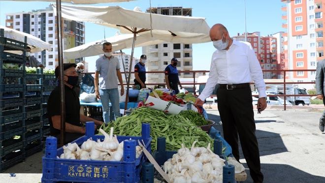 Koronavirüs (Kovid-19) salgının görülmesinin ardından yaptığı hizmetlerle ve açıklamalarıyla dikkat çeken Kocasinan Belediye Başkanı Ahmet Çolakbayrakdar, son olarak vatandaşların yoğun olduğu semt pazarını ziyaret ederek, maske, mesafe ve temizlik hatırlatması yaptı. Başkan Çolakbayrakdar, bu süreçte sosyal mesafe, maske ve temizliğin önemli olduğunu vurguladı.