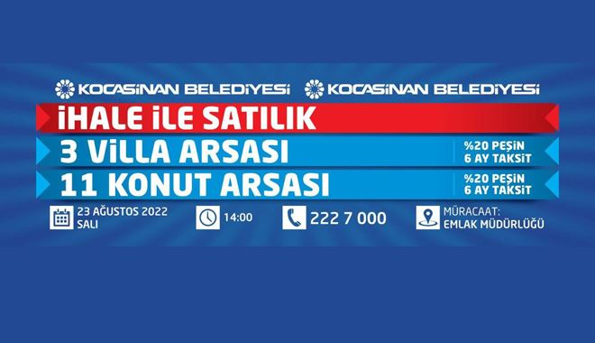 Kocasinan Belediyesi; ilçenin farklı noktalarında bulunan 14 adet konut ve villa arsasını, yüzde 20 peşin ve 6 ay taksit seçeneği ile 23 Ağustos Salı günü düzenlenecek ihale ile satışa sunacak. Kocasinan Belediye Başkanı Ahmet Çolakbayrakdar, Kocasinan’a yatırım yapan herkesin kazançlı çıkacağını söyledi.