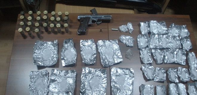 Kaçakçılık ve Organize Suçlarla Mücadele Şube Müdürlüğü ekiplerinin yaptığı bir başka operasyonda S.S. kardeşi S.S., karısı G.S. ve F.K.`nın araçlarında ve evlerinde arama yapıldığı bildirildi. Yapılan aramalarda, 34 adet alüminyum folyo içerisinde 63,50 gram gelen metamfetamin maddesi, şahıslardan SS isimli şahsın pantolonun cebinde 2 ayrı alüminyum folyoya sarılı 0,50 gram gelen metamfetamin maddesi, FK isimli şahsın üzerinde 1 adet alüminyum folyoya sarılı 0,50 gram gelen metamfetamin maddesi, oda içerisinde alüminyum folyoya sarılı 1,10 gram gelen metamfetamin maddesi, şeffaf naylona sarılı vaziyette parçalanarak toz haline getirilmiş 0,5 gram gelen ecstasy tablet kırıntısı, 1 adet ruhsatsız tabanca, tabancaya ait 1 adet şarjör, ve 1 adet 7,65 mm çapında fişek ile 1 adet yarı otomatik av tüfeği ve 24 adet çeşitli markalarda av fişeği ele geçirildi.