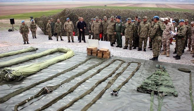 Tatbikata katılan 4. Kolordu Komutanı Korgeneral Mehmet Faruk Şengül ve Katar´dan gelen heyete tatbikatın sonunda, statik ve serbest paraşüt sistemleri ile uçaktan atılan yük tipleri gösterildi.