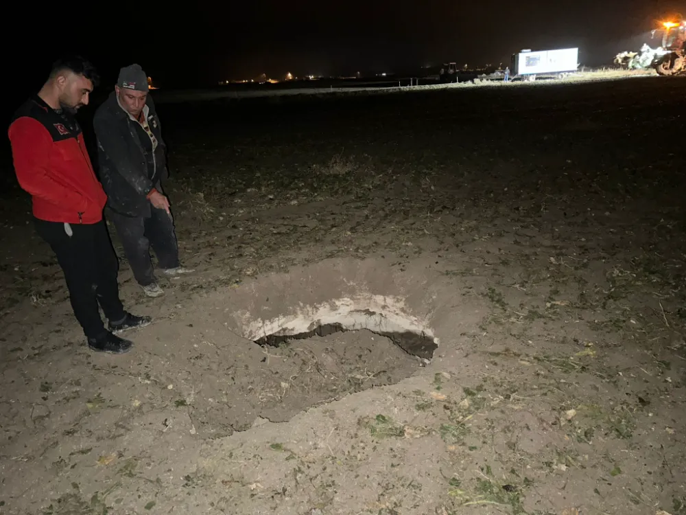 Durumu yetkililere bildiren Dinkul, "Tarlada hasat yapıyordum. Birden büyük bir gürültü duydum ve pancar sökme makinesinin arka tekeri çukura girdi. Makinenin tekerinin patladığını sandım. Geri çekildiğimde obruğu gördüm. Söküme ara verdim. Çok korktum ama şükür kimse zarar görmedi." dedi.