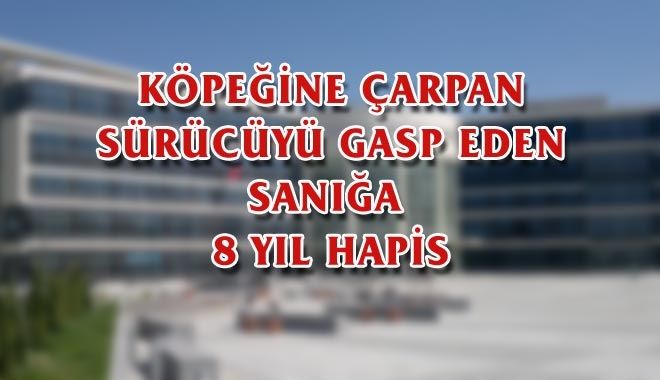 Kayseri´de köpeğine çarpan bir sürücünün hem cep telefonunu, hem de 200 TL´sini gasp ettiği iddiasıyla tutuklu yargılanan sanığa 8 yıl 4 ay hapis cezası verdi.