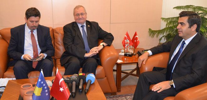 Kosova`nın Ankara Büyükelçisi Avni Sipahiu öncülüğünde, Müsteşar Güner Ureya ve Kosova Kayseri Fahri Konsolosu Emin Hisarcıklıoğlu’ndan oluşan heyet, bu günün ilk ziyaretini Vali Orhan Düzgün`e gerçekleştirdi... Konuklarını ağırlarken ziyaretten duyduğu menuniyetini dile getren Vali Orahan Düzgün; Kosova’da ki yaşayış biçiminin Trakya’da yaşayan halkımızdan bir farkı olmadığını vurgulayarak "Kültür Bakanlığı`nda görev yaptığı dönemde Kosova da ki Sinan Paşa Camisi`nin ve Murat Paşa Türbesi`nin restorasyonunda görev almıştım. Kosova halkının yaşayış ve kültür biçimini gördüğümüzde bizim Trakya da yaşan halkımızdan bir farkı olmadığını görüyoruz” şeklinde konuşarak iki ülke halkları arasındaki tarihi başa dikkat çekti...