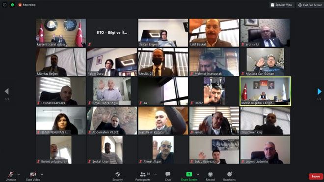 Kayseri Ticaret Odası (KTO) Ocak ayı olağan meclis toplantısı, koronavirüs salgını sebebiyle alınan tedbirler kapsamında, video konferans ile gerçekleştirildi. Meclis Başkanı Cengiz Hakan Arslan’ın başkanlığında gerçekleştirilen toplantıya; Başkan Ömer Gülsoy, Yönetim Kurulu üyeleri, Meslek Komitesi ve Meclis Üyeleri, Kadın Girişimciler Kurulu, İcra Kurulu Üyeleri, Yüksek İstişare Kurulu Üyeleri, Meclis Başkanlık Divan üyeleri ve Basın mensupları katıldı.