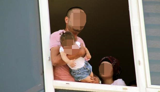 Kayseri´de Ömer A. (40), kucağına aldığı 1,5 yaşındaki kızıyla 5 katlı iş merkezinin 3´üncü katındaki penceresine çıkarak intihara kalkıştı. Korku dolu anlar yaşatan Ömer A., 20 dakika süren ikna çabaları sonrası indi.