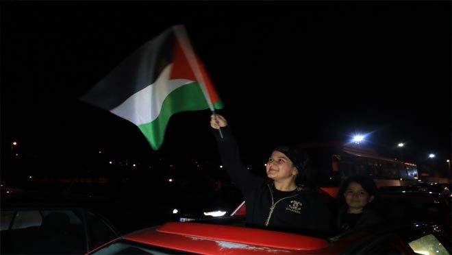 7’den 70’e ilimiz sakinleri de yol boyunca ellerindeki Filistin ve Türk bayrakları ile konvoya destek verdi.