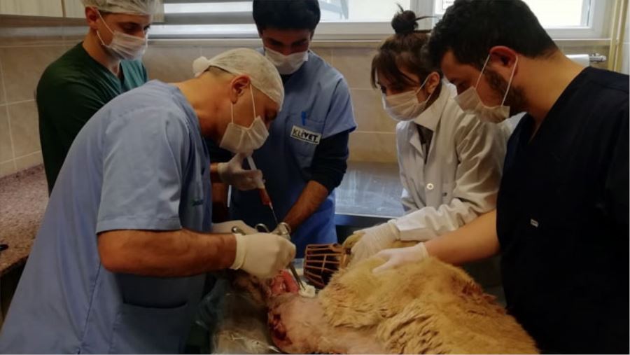 Sadece köpeklerin değil diğer hayvanların da aç kalan kurtlar ve yırtıcılar tarafından yaralanarak kendilerine getirildiğini söyleyen Gültekin Atalan, “Develi ilçesinden bir kangal köpek, bu sabah itibariyle bize getirildi. Tahminen 5 gün kadar önce köye inen kurtlarla kendini ve köyünü savunmak amaçlı kavga sonucunda, göğüs bölgesinde ve sol ön kol bölgesinde geniş çaplı yaralar oluşmuş. Hayvanın genel durumu şu an itibariyle iyi değil. Biz gereken medikal tedaviyi yapacağız ve bugün içerisinde yırtık olan deri ve kas kısımlarının onarımını yaparak, hastanın iyileşme sürecini başlatacağız. Bu tür saldırıları ülke genelinde ve özellikle Kayseri çevresinde çok sık görüyoruz. Bu şekilde ağır yaralı olarak bize intikal eden köpekler dışında birçok hayvan var. Buna kurlarla olan av mücadelesi diyebiliriz. Kurtlar, genelde kar yağdığı zaman yapı itibariyle köylere inerler ve beslenirler ve bu da öyle bir vaka. Kar nedeniyle yiyecek bulamadıkları için, köylere ve şehir merkezlerine rahatça inebilmektedirler ve gördükleri yiyebilecekleri şeyleri avlayarak beslenme sağlamaktadırlar” dedi.