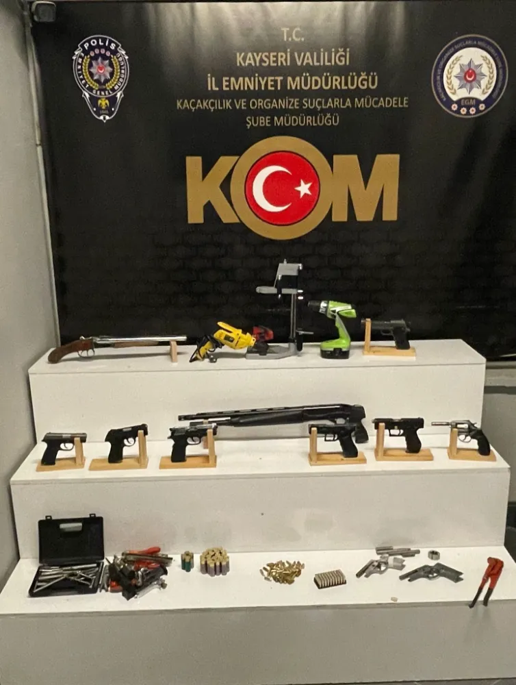 Edinilen bilgiye göre, Kayseri İl Emniyet Müdürlüğü Kaçakçılık ve Organize Suçlarla Mücadele Şube Müdürlüğü ekipleri, M.S.Y. ve M.A.’nın kurusıkı tabancaların namlularında yaptıkları tadilat ile bu tabancaları yasak nitelikteki ateşli silahlara dönüştürerek, satışını yaptıklarını tespit etti. Ekipler tarafından şahısların araçlarında ve ikametlerinde yapılan aramada 7 adet ruhsatsız tabanca, 2 adet ruhsatsız av tüfeği ve bunlara ait 17 adet kartuş, 96 adet tabanca fişeği ile çok sayıda silah tamirinde kullanılan malzeme ele geçirildi. Ekipler tarafından M.S.Y. ve M.A. gözaltına alındı