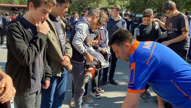 Ayrıca, AFAD, Jandarma Arama Kurtarma ve ANDA Arama Kurtarma ekipleri, afet sonrası arama kurtarma faaliyetlerinde kullanılan eşyaları tanıtırken, itfaiye ekipleri de öğrencilere yangın söndürme tekniklerini gösterdi. Afetler hakkında öğrencilere açıklamalarda bulunan AFAD Müdahale Şube Müdürü Hasan Say, “Ülke olarak biliyorsunuz ki deprem ülkesiyiz. Deprem bizim gerçeğimiz. Nüfusumuzun yüzde 92’si sanayimizin de yaklaşık yüzde 94’ü deprem riski altında. Başka bu kadar güzel bir vatanımız, Türkiye’miz yok. O yüzden depremle yaşamayı öğrenmemiz gerekiyor” dedi.