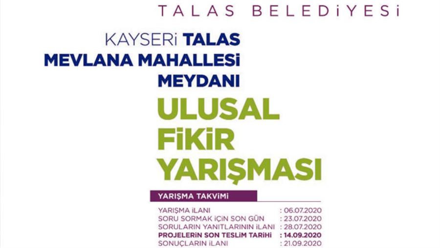 Mimarlar Odası ile Talas Belediyesi ortaklığında “Mevlana Mahallesi Meydanı Ulusal Fikir Yarışması” süreci başladı. Talas Mevlana Mahallesi’nde bulunan meydan ulusal yarışma ile yenilecek. Talas Belediyesi ile Mimarlar odası Kayseri şubesinin ortaklaşa düzenlediği yarışma Eylül ayının sonunda sonuçlanacak. ,