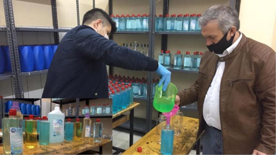 Kayseri’nin Kocasinan ilçesinde bulunan Ahi Evran Mesleki ve Teknik Anadolu Lisesi, okulda ürettikleri dezenfektanları diğer illere gönderdikleri gibi mahalle halkına da ücretsiz olarak dağıtıyor.