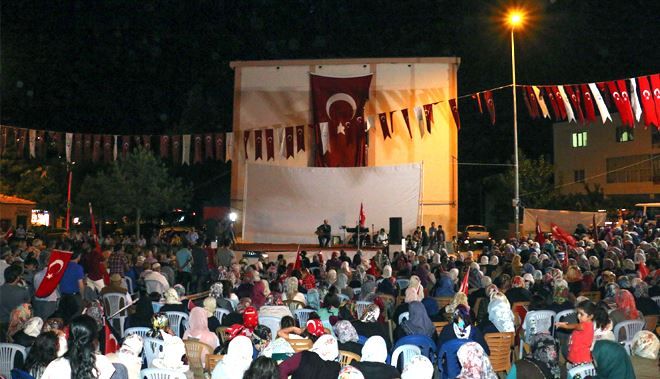 Demokrasi ve Milli İrade Nöbeti mahalli sanatçıların söyledikleri marşlar, türküler ve okudukları şiirlerle ile gece geç saatlere devam etti.