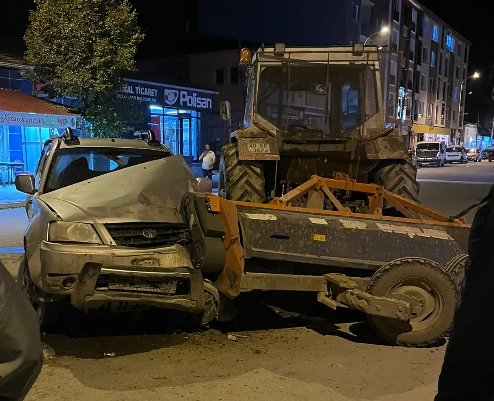 Işıklar Mahallesi Eskişehir Caddesi'nde seyreden B.S. idaresindeki 40 KE 367 plakalı traktörle, H.T. yönetimindeki plakası öğrenilemeyen pikap çarpıştı.