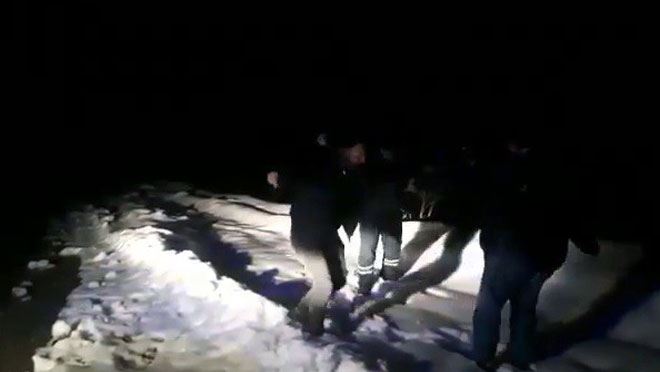Kayseri'nin Yahyalı ilçesinde kar nedeniyle mahsur kalan besicileri kurtaran ekipler, sevinçten oynadı.