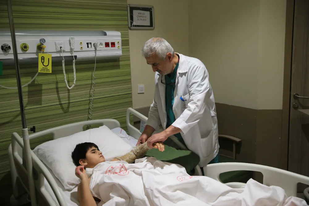 "Mikail mangalda kıyafetlerinin yanması sonucu özellikle her iki bacağında derin 3. derece yanıklarla bize geldi. Tedavileri yapıldı, tedavisinin son aşamadayız. 3 kez ameliyat edildi. Yanık yerleri temizlenip, yamalar yapıldı. Vücudunun sağlam yerlerinden aldığımız derilerle yaralarını kapattık. Derileri kolundan, ayağındaki yanmamış alanlardan aldık. Genel durumu iyi yakında taburcu edeceğiz inşallah."
