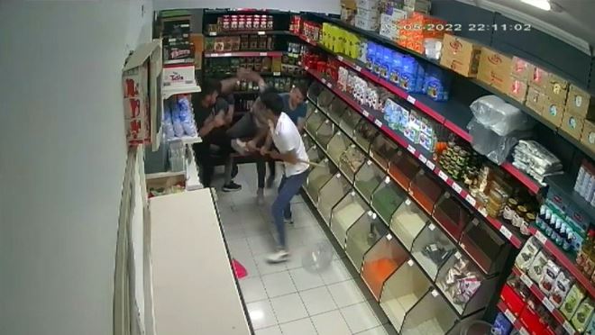 Yumrukların havada uçuştuğu kavga ise kayıtta olan market kameralarına saniye saniye yansıdı.