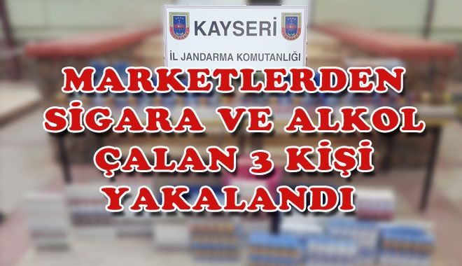 Kayseri´de marketlerden çaldıkları sigara ve içkileri sattıkları belirlenen 3 kişi yakalanırken, firarda olan bir kişinin yakalanması için çalışma başlatıldı.