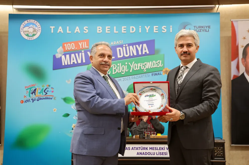 alas Belediyesi tarafından gençlerin çevre bilincini artırmak amacıyla düzenlenen 100. Yıl Liseler Arası Mavi Yeşil Dünya Çevre Bilgi Yarışması sona erdi. Yarışmada birinciliği Talas Atatürk Mesleki ve Teknik Anadolu Lisesi elde ederken, Talas Belediye Başkanı Mustafa Yalçın, dereceye giren öğrencilere tablet, bileklik ve taşınabilir bellek hediye etti.