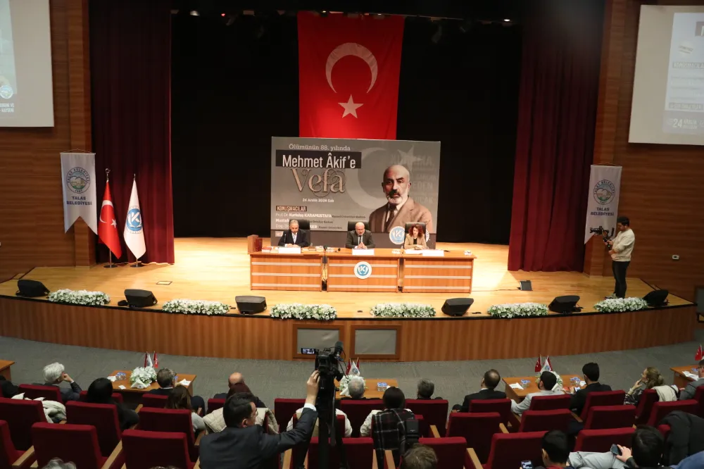 Kayseri Üniversitesi (KAYÜ) ve Talas Belediyesi tarafından KAYÜ Kongre ve Kültür Merkezi'nde düzenlenen tören, saygı duruşunda bulunulması ve İstiklal Marşı'nın okunmasıyla başladı.