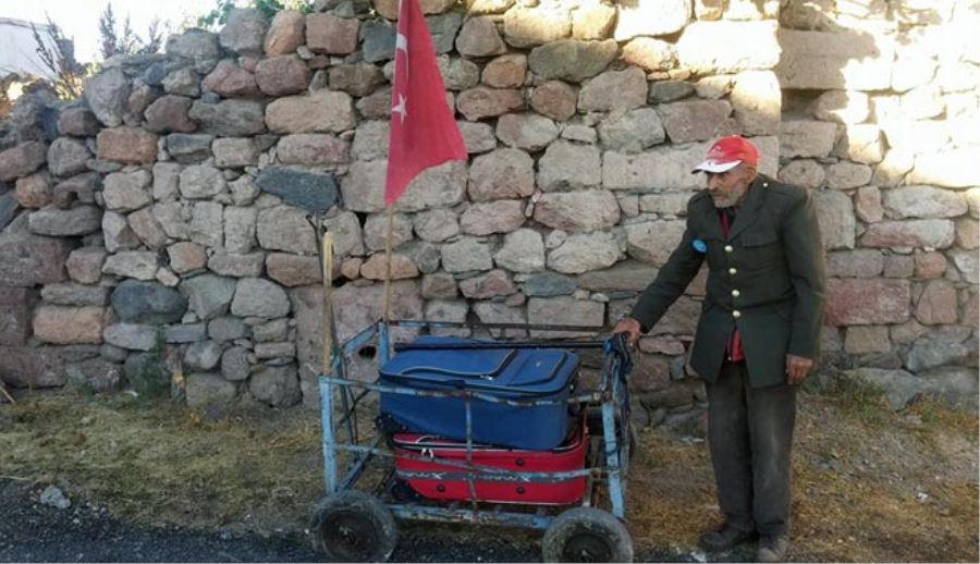 Kuşcağız Mahallesinde, okul lojmanında kalan, Kaymakamlığın da yardım ettiği Türkmen, her sabah el arabasına yüklediği çorap dolu valizlerle ilçe merkezinin yolunu tutuyor.