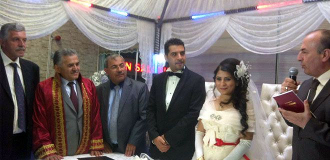 Bir düğün salonunda düzenlenen düğüne çok sayıda davetli katıldı. Düğünde evlenen Safiye Uğurlu ve Aykut Erdem`in nikah memurluğunu Melikgazi Belediye Başkanı Memduh Büyükkılıç yaptı. Büyükkılıç kıydığı nikah sonrası çifte mutluluklar dileyerek, evlilik cüzdanını Safiye Uğurlu`ya verdi.