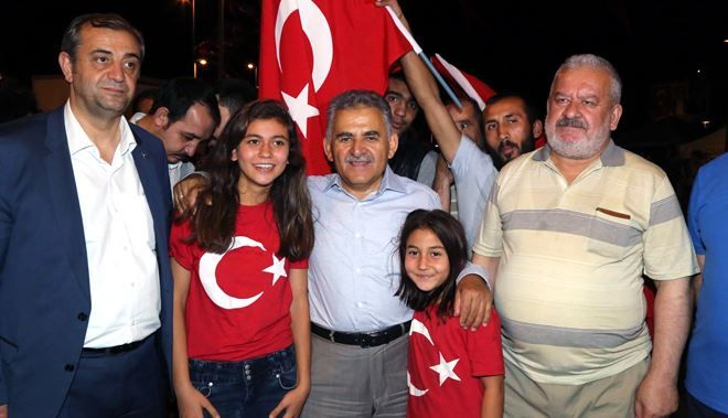 15 Temmuz´dan bu yana her akşam, Cumhuriyet Meydanı´nda demokrasi nöbeti tutan vatandaşlarla bir araya gelen BaşkanMemduh Büyükkılıç, Türkiye´nin çok önemli bir süreç yaşadığını belirterek, ?Tarihi bir dönem yaşıyoruz. Cumhuriyet Meydanı´ndayız. 15 Temmuz´da yaşanan darbe kalkışmasının ardından Başkomutanımız Cumhurbaşkanı Recep Tayyip Erdoğan´ın çağrısıyla, halkımız Türk Bayrakları ile sokaklara çıktı, meydanları doldurdu. Sadece Türkiye değil, dünya tarihi açısından da bir dönüm noktasını yaşıyoruz. Destan ve tarih yazılıyor.? Değerlendirmesinde bulundu?