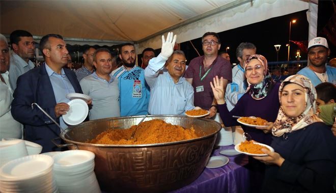 Yurt genelinde vatandaşların, FETÖ/PDY üyesi bir grup tarafından yapılan darbe girişimine tepki göstermek için ellerinde Türk bayraklarıyla meydanlara akın ettiğini belirten Melikgazi Belediye Başkanı Memduh Büyükkılıç, Melikgazi Belediyesi nöbet çadırında 15 kişilik hazırlanan etli pilav ve ayran ile nöbet tutanlara ikram ederek moral ve birliktelik desteği kazandırdı.