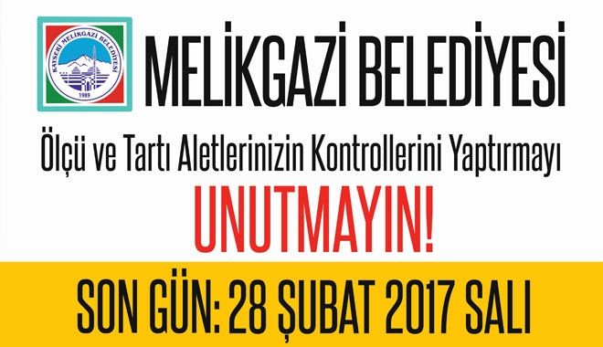 ?Ocak ve Şubat aylarında yapılması zorunlu olan ölçü aletlerinin muayenesi için Melikgazi Belediyesi´nin ölçü ve ayar memurluğuna başvuruda bulunulması gerekmektedir. Tartı ağırlıklarının her birinden, el terazileri, normal masa terazileri, otomatik terazileri, elektronik terazileri, kantar ve basküllerde bu kapsamda olup, 28 Şubat´a kadar yaptırmaları gerekmektedir. Melikgazi´ye bağlı grup merkezi ölçü ayar memurluğu tarafından damgalanamayan ve herhangi bir nedenle damga yaptırmayan esnaflara yasa gereği ceza uygulanacaktır. 3516 Sayılı Ölçüler ve Ayar Kanunu´nun 15. maddesi gereğince damgası kopmuş bozulmuş damga süresi dolmuş ölçü ve tartı aletleri kullananlara da cezai işlem uygulanması zorunludur. Kişi ve kuruluşların cezai duruma düşmemeleri için belirtilen süre içinde müracaat sahibinin kimlik bilgileri, adres bilgileri, tartı ve ölçü aletinin cinsi, çekeri, markası, seri numarasının yer aldığı beyannamelerini mutlaka vermeleri gerekmektedir.?
