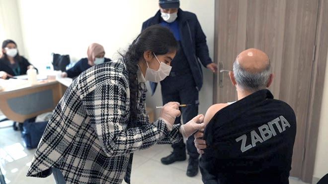 Melikgazi Belediyesi personeli, Sağlık Bakanlığı tarafından başlatılan yerinde korona virüs aşı uygulaması kapsamında aşılanmaya devam ediyor.