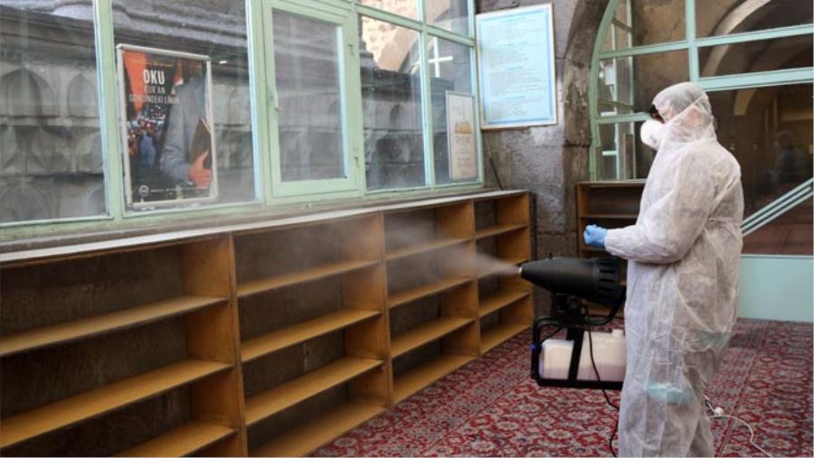 Son günlerde dünya genelinde etkili olan salgın hastalık riskine karşı ibadethane ve sosyal tesislerde ilaçlama ve dezenfekte çalışmalarına başlayan Melikgazi Belediyesi ortak kullanım alanlarını hijyenik hale getirmeye çalışıyor.