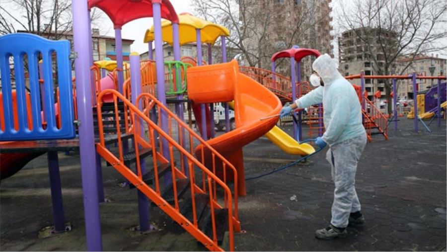 Başkan Dr. Palancıoğlu, çocukların çok zaman geçirdiği parklardaki oyun grupları ve spor aletlerinin de dezenfekte edilerek hijyen çalışmalarının yapıldığını kaydetti.