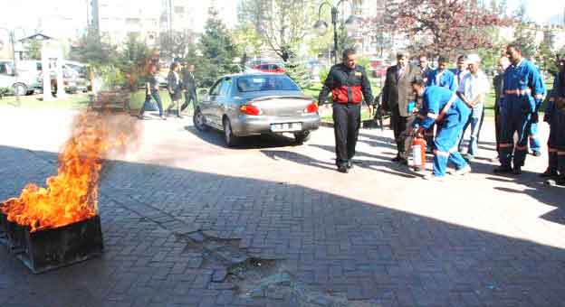 teorik bilgiler verildi daha sonra ise uygulamalı yangın tatbikatı