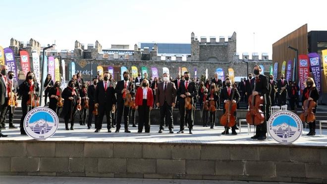 Melikgazi Belediyesi Tarihi Kayseri Kalesi’nde 100 kişilik orkestra ile İstiklal Marşı’nın kabulünün 100. yılını kutladı.