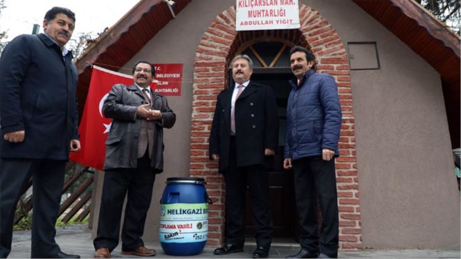 Temiz çevre ve daha sağlıklı bir hayat için geri dönüşüm çalışmalarını yürüten Melikgazi Belediyesi, muhtarlıklara atık yağ bidonu dağıttı.