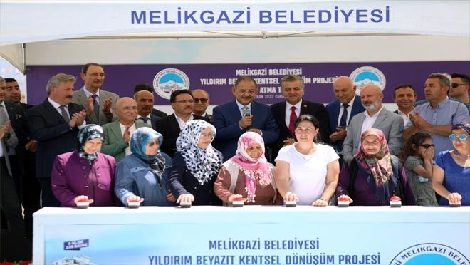 Kentsel Dönüşüm’de marka projelere imza atan Melikgazi Belediyesi, Yıldırım Beyazıt Kentsel Dönüşüm Projesi kapsamında 6 blok ve 236 dairenin temel atma törenine AK Parti Genel Başkan Yardımcısı, Yerel Yönetimler Başkanı Mehmet Özhaseki’nin yanı sıra Vali Gökmen Çiçek, AK Parti Milletvekili İsmail Tamer, ERÜ Rektörü Prof. Dr. Mustafa Çalış, Kocasinan Belediye Başkanı Ahmet Çolakbayrakdar, AK Parti İl Başkanı Şaban Çopuroğlu, MHP İl Başkanı Adnan İncetoprak, Melikgazi AK Parti İlçe Başkanı Gökhan Ülke ve davetliler katıldı.