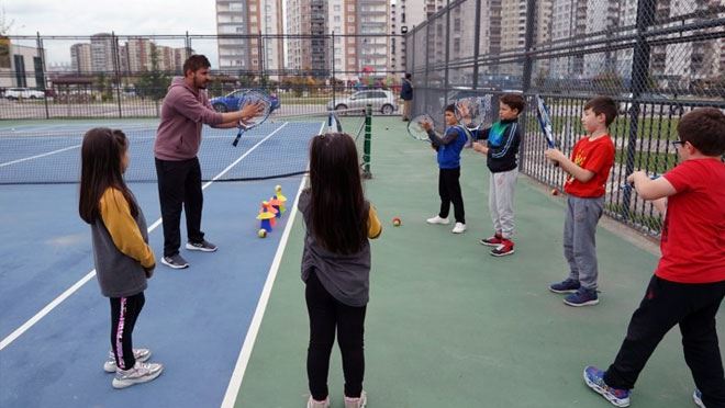 Melikgazi Belediye Başkanı Dr. Mustafa Palancıoğlu, belediyenin tenis kurslarına katılan çocukların, spor yaparak hem sosyalleştiklerini hem de eğlenceli vakit geçirdiklerini kaydetti.