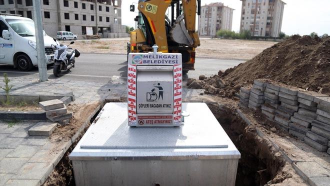 Melikgazi Belediyesi yeraltı konteyner sistemi uygulamaları kapsamında ilçenin birçok bölgesinde çöpler yer altına alınmaya devam ediyor. Bu kapsamda 30 tane yeraltı çöp konteyneri Belsin bölgesine montaj edildi.