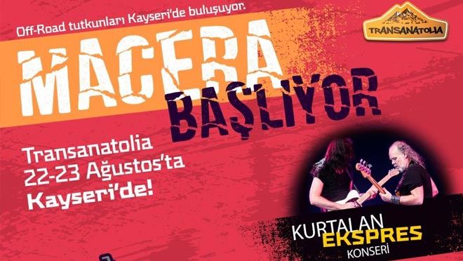 Kayseri’de off-road tutkunların buluşturmak için yine heyecan ve macera dolu bir programa daha imza attıklarını söyleyen Başkan Dr. Palancıoğlu; "Melikgazi’mizde müzik, adrenalin ve heyecan dolu bir program daha düzenliyoruz. Melikgazi’miz kültürün, sanatın, sosyal yaşamın merkezi olarak her geçen gün gelişiyor. Vatandaşlarımızın kültürel ve sosyal etkinliklerden eksik kalmaması için tüm imkanlarımızı seferber ediyor, gece gündüz çalışıyoruz. Transanatolia Rally Raid etkinliğine bu yıl Melikgazi Belediyesi olarak ev sahipliği yapıyoruz. 23 Ağustos Salı günü saat 20.30’da Erciyes Üniversitesi karşısındaki açık otopark alanında düzenlenecek olan konserimiz ile müzik dolu bir akşam sunacağız. Programda Kurtalan Ekspres sevilen birbirinden ünlü şarkılarıyla sahne alacak. Yapılacak olan konser ile sanatçımızın hayranları sevilen şarkılarını hep birlikte seslendirecekler. Konserimize katılmak isteyen tüm Kayserili hemşerilerimizi bekleriz" dedi.