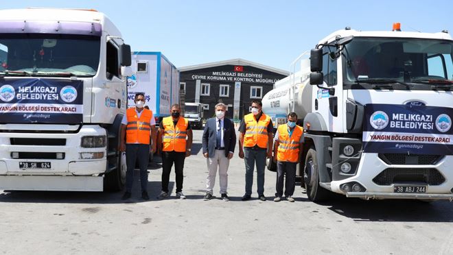 Melikgazi Belediyesi olarak her türlü desteği vermeye hazır olduklarını belirten Melikgazi Belediye Başkanı Dr. Mustafa Palancıoğlu, “Ülkemizin birçok bölgesinde ne yazık ki ormanlarımız yanıyor, ciğerlerimiz yanıyor. Maalesef ülke genelinde yangınlar hepimizi çok üzdü. Bu kapsamda Türkiye Belediyeler Birliği başta olmak üzere Cumhurbaşkanımızın koordinasyonunda herkes seferber oldu. Biz de belediyeler olarak Türkiye genelinde elimizden gelen her türlü desteği vermeye çalışıyoruz. Bu kapsamda ilk etapta belediye olarak özellikle mobil duş ve WC aynı zamanda da hem toma görevi gören üstten su fışkırtan arazözümüz var. Yangınla mücadele eden ekiplere ve vatandaşlara destek olmak amacıyla Muğla’ya su, 4x4 bir araç, mobil WC-duş ve su arazözü yangın bölgesine gönderiyoruz. Bunun haricinde de gerekli talepler bize ulaştıkça, iş makinesi olsun, su ve ayran gibi ihtiyaçlar olsun Melikgazi Belediyesi olarak elimizden gelen desteği vereceğiz. Arkadaşlarımız görevli olarak gidiyorlar. Zaten önden bir heyet göndermiştik onlar çalışıyorlar, inşallah kazasız belasız oraya ulaşırlar ve oradaki mücadeleye destek verirler. İnşallah en kısa zamanda bu yangınlar söner failleri buluruz. Bu büyük felaketten kenetlenerek, dayanışma içinde çıkacağız, hep birlikte çıkacağız.” diye konuştu.