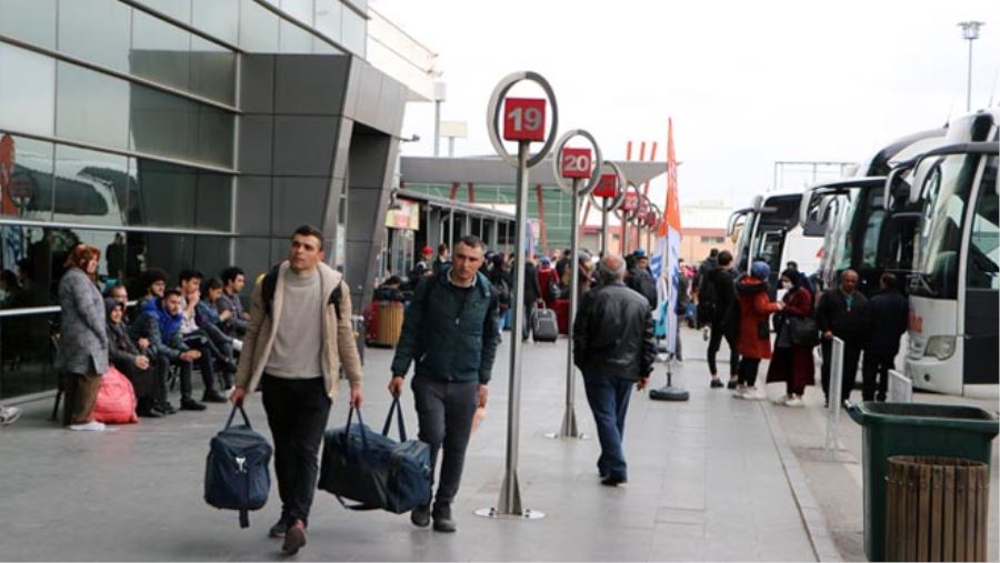 Kayseri'de de üniversite öğrencileri şehirler arası otobüs terminaline akın etti.