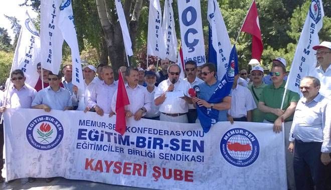 Cumhuriyet Meydanı´nda bir araya gelen Memur-Sen´e üye memurlar İl Temsilcisi Aydın Kalkan önderliğinde gerçekleştirdikleri basın açıklamasında Suruç ve Adıyaman´da gerçekleşen terör saldırılarını lanetleyerek toplumun bütün kesimlerine terör olaylarına karşı ortak hareket etme çağrısında bulundular? Protestocu memurlar adına konuşan Memur-Sen İl Temsilcisi Aydın Kalkan, "Türkiye´de huzur, sükun ve kardeşlik ikliminin hakim olmasından rahatsız olan odaklarca Suruç´ta gerçekleştirilen ve 32 insanımızın ölümüyle sonuçlanan terör saldırısını şiddetle kınıyoruz" değerlendirmesinde bulunarak "Suruç´ta çoğunluğunu gençlerimizin oluşturduğu vatandaşlarımızın ölümüyle sonuçlanan terör saldırısı çok uzak almayan tarihlerde gerçekleştirilen olaylardan bağımsız değildir. Sözü edilen terör yapılanmaları ve faaliyetlerinin her birinin faili ya da sorumluları farklı olsa da hedefi ortaktır. Hedef bölgesinde huzuru, demokratik kültürü, kardeşlik ve birlik iklimiyle öne çıkan Türkiye´nin yolunu kesmek, güçlü ve büyük Türkiye yolculuğunu sona erdirmektir" ifadesini kullandı?