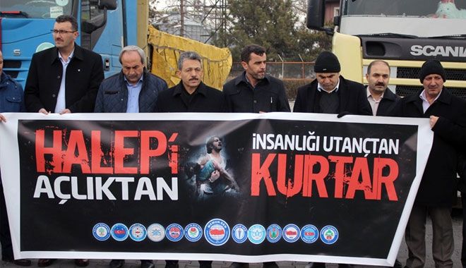 Memur-Sen İl Temsilciliğince başlatılan ve başarı ile devam ettirilen ´Halep´i açlıktan, insanlığı utançtan kurtar´ başlıklı yardım kampanyasında toplanan unlar 2 Tır´a yüklenerek Haleplilere ulaştırılmak üzere yola çıkartıldı? Tertiplenen uğurlama töreninde konuşan Memur-Sen Kayseri İl Temsilcisi Aydın Kalkan ?Bizim mücadelemiz, erdemli insanların mukaddes mücadelesidir. Bizler bir vücudun azaları gibiyiz. Halep´te İmran bebeğe bomba düştü, Kayseri´deki İmranların yüreği acıdı. Her zaman mazlumun yanında olmaya devam edeceğiz? ifadesini kullandı?
