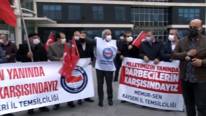 Geçtiğimiz günlerde emekli 104 amiral tarafından yayımlanan bildiri ile ilgili basın açıklaması yapan Memursen il temsilcisi Aydın Kalkan, kendisini millet iradesinin üzerinde gören bir grup emekli amiral vesayet dönemlerine özlem duyan bir açıklama yayınladılar. Millete muhtıra verilen dönemlerden kalmış köhne bir zihniyetin hazırladığı bu açıklamayla, Silahlı Kuvvetler dâhil olmak üzere devletin kurumlarının milletin hizmetinde olmasından duyulan rahatsızlık açık edildi ifadelerini kullandı.
