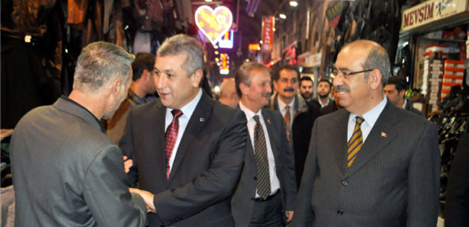 Yaklaşan Mahalli İdareler Seçimleri öncesi seçim çalışmalarına devam eden Milliyetçi Hareket Partili adaylar Kapalı Çarşı esnafını ziyaret etti.