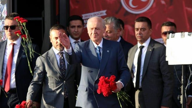 Yunanistan Başbakanı Miçotakis'e de seslenen MHP Genel Başkanı Devlet Bahçeli, "Anlaşılıyor ki, Türkiye’yi ve Türk milletini dört bir taraftan kuşatma altında tutuyorlar. Bir yanda Ermeni çeteleri, diğer yanda Yunan kepazeliği; bir yanda güney sınırlarımız boyunca tahriklerini sürdüren terör örgütleri, diğer yanda küresel baskılar. Yunanistan Başbakanı, Türkiye’ye 'gece gelme gündüz gel' diyormuş. Geliriz gelmesine, ama gündüzünüzü gece gibi örtmeye, tacizlerinizin bedelini misliyle ödetmeye seve seve, koşa koşa, kanımızla, canımızla geliriz. Geldiğimizde Miçotakis’i korumaya ne efendilerinin ne de güvendiği işbirlikçi çevrelerin gücü de yetmez. Hedef Türk milletidir, silah çekenler ise küresel emperyalizmin cinayet devriyesine çıkarttığı vatansızlardır. Ekonomimizin hisarlarını yıkmak istediler, dayandık, enflasyonu düşürmek, hayat pahalılığını ortadan kaldırmak için Cumhur İttifakı olarak seferber olduk. Kılıçdaroğlu karalamaya çalışsa da, destekleyip arkasında olduğumuz 'İlk Evim ve İlk İşyerim' adıyla tarihin en büyük sosyal konut projesi hükümet tarafından hayata geçirildi. 81 ilimizde ve tüm ilçelerimizde 2023-2028 yılları arasını kapsayan süreçte 500 bin sosyal konut, 250 bin konut amaçlı arsa, 50 bin iş yeri yapmak suretiyle milletimize muazzam bir hizmet için kollar sıvandı. Bu arada CHP, İzmir’de milyon dolarları ödeyerek konser düzenlemekle, iftira atmakla, yapılanı aşağılamakla, dün doğru dediği kanunları bugün Anayasa Mahkemesi’ne taşımakla meşgul oldu. Onlar konuştu, Cumhur İttifakı gereğini yaptı. Allah’ın izniyle daha yapacağımız çok iş vardır. Türkiye’yi ihracatta, istihdamda, üretimde, kalkınmada, büyümede, siyasi, diplomatik ve toplumsal huzur alanlarında çağ atlatmaya çok şükür hazırız ve buna da kararlıyız" diye konuştu.
