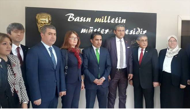 Gazeteciler Cemiyeti Başkanı Metin Kösedağ'i makamında ziyaret eden MHP Kayseri Milletvekili Adayları, Hasan Ali Kilci, Süleyman Korkmaz, Prof. Dr. Mustafa Alkan, Metin Soylu, Mehmet Özmen, Eser Türkistanlı Saka, Mete Taştan, Sevim Koçyiğit seçim startını Cemiyet Hizmet binasından verdiler
